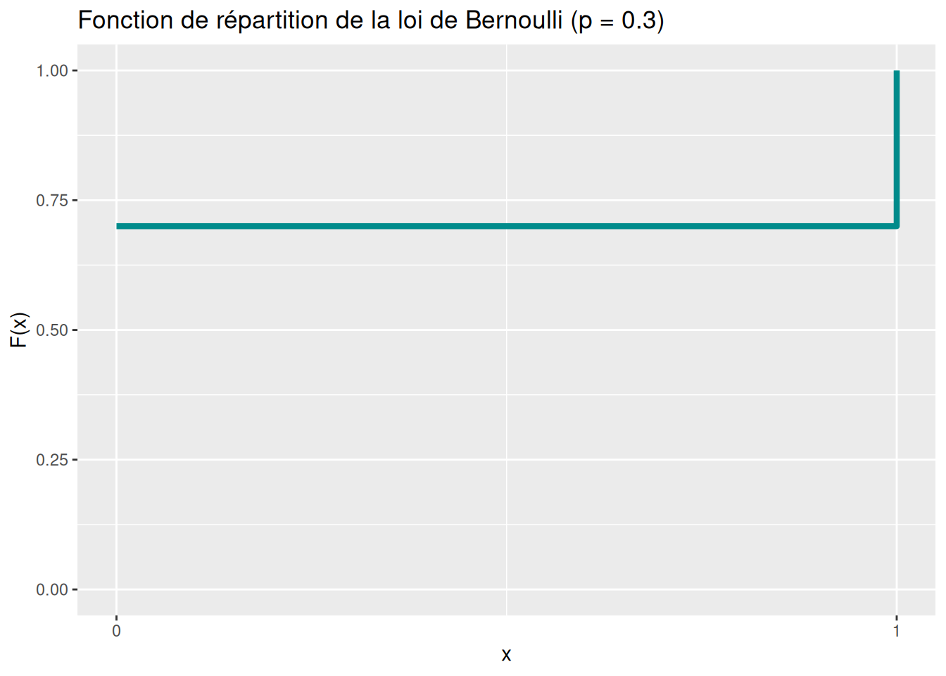 labs(title = "Fonction de répartition de la loi de Bernoulli (p = 0.3)",