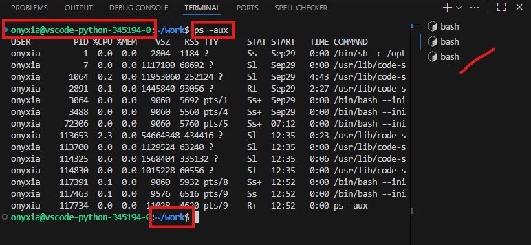 - vous êtes connecté avec l’utilisateur onyxia sur la machine virutelle vscode-python-345194-0